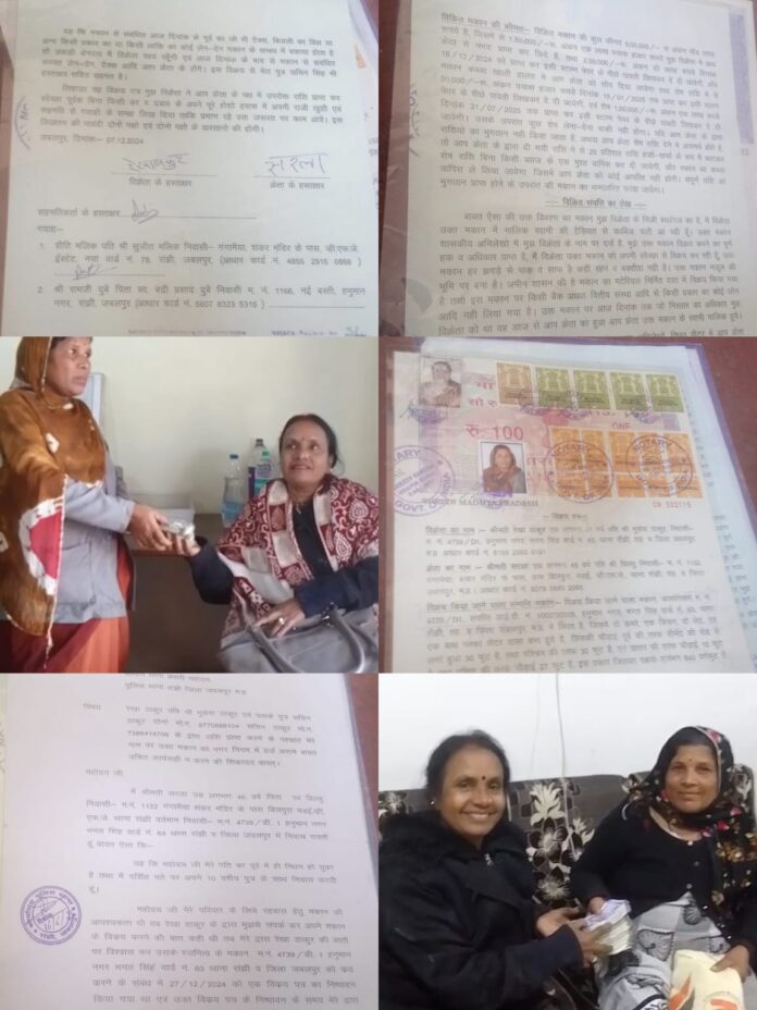 पीड़िता का आरोप है कि रेखा ठाकुर और उनके पुत्र सचिन ठाकुर ने हनुमान नगर स्थित मकान बेचने के लिए उनसे संपर्क किया और 27 दिसंबर 2024 को एक विक्रय पत्र तैयार कराया गया। सरला का कहना है कि इस मकान के लिए उन्होंने अलग-अलग समय पर कुल करीब 5 लाख रुपये का भुगतान कर दिया। विक्रय पत्र में यह भी उल्लेख किया गया था कि पूरी राशि मिलने के बाद मकान का नामांतरण नगर निगम में करा दिया जाएगा।