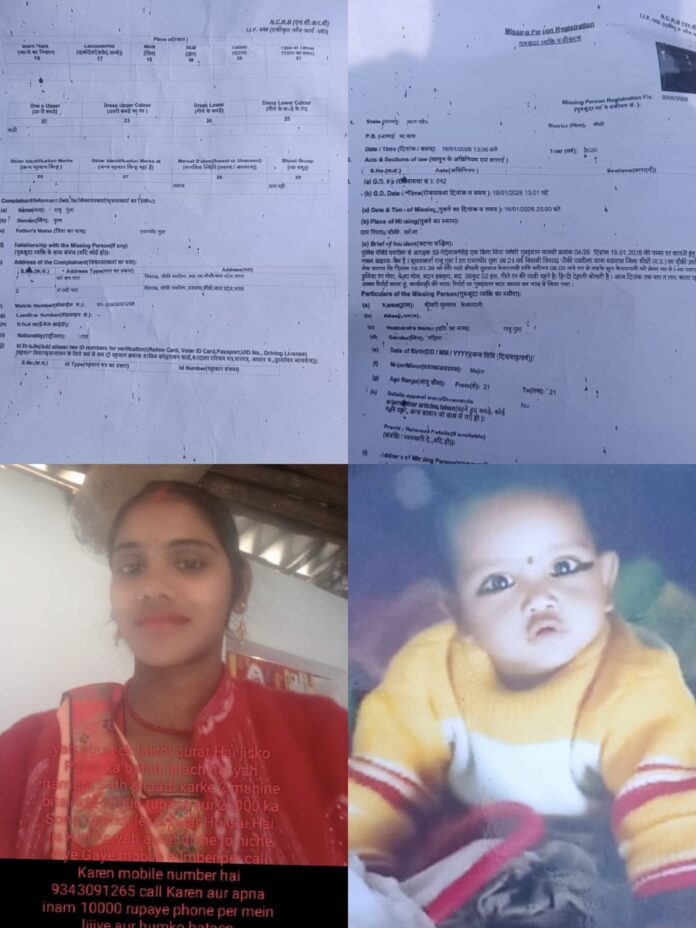 सीधी जिले के थाना क्षेत्र के ग्राम वियरा यौवन बरीला से एक बेहद गंभीर और हृदय विदारक मामला सामने आया है, जहां 21 वर्षीय विवाहिता श्रीमती मुस्कान केसरवानी अपने 8 महीने के मासूम बेटे शुभ केसरवानी के साथ रहस्यमय परिस्थितियों में लापता हो गई हैं। पांच दिन बीत जाने के बावजूद मां-बेटे का कोई सुराग नहीं मिला है, जिससे पूरा परिवार सदमे और दहशत में है।