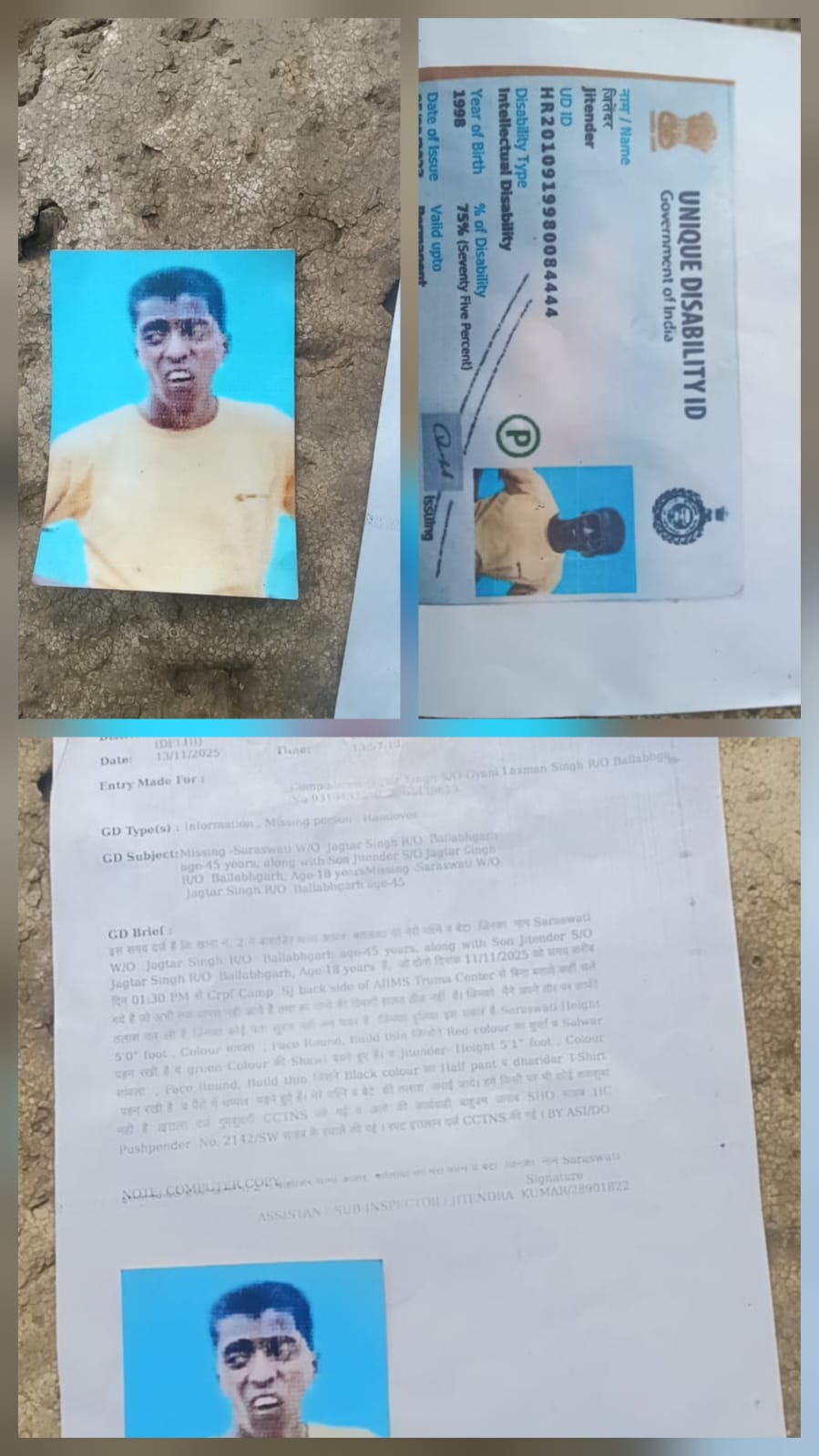 हरियाणा के फरीदाबाद जिले के बल्लभगढ़ क्षेत्र से एक बेहद चिंताजनक और दिल दहला देने वाला मामला सामने आया है, जहां इलाज के लिए गई मां के साथ गया 18 वर्षीय गूंगा और मंदबुद्धि युवक रहस्यमय ढंग से लापता हो गया। पीड़ित पिता जगतार सिंह, निवासी सेक्टर-8, थाना बल्लभगढ़, अपने बेटे जितेंद्र की तलाश में दर-दर भटक रहे हैं, लेकिन अब तक कोई ठोस जानकारी हाथ नहीं लगी है।