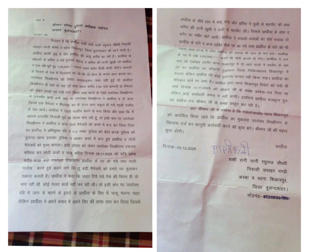 “यदि समय रहते कार्रवाई नहीं हुई तो ये लोग मुझे किसी भी दिन जान से मार सकते हैं। पुलिस से गुहार है कि मेरी शिकायत पर मुकदमा दर्ज कर मुझे सुरक्षा दी जाए।”