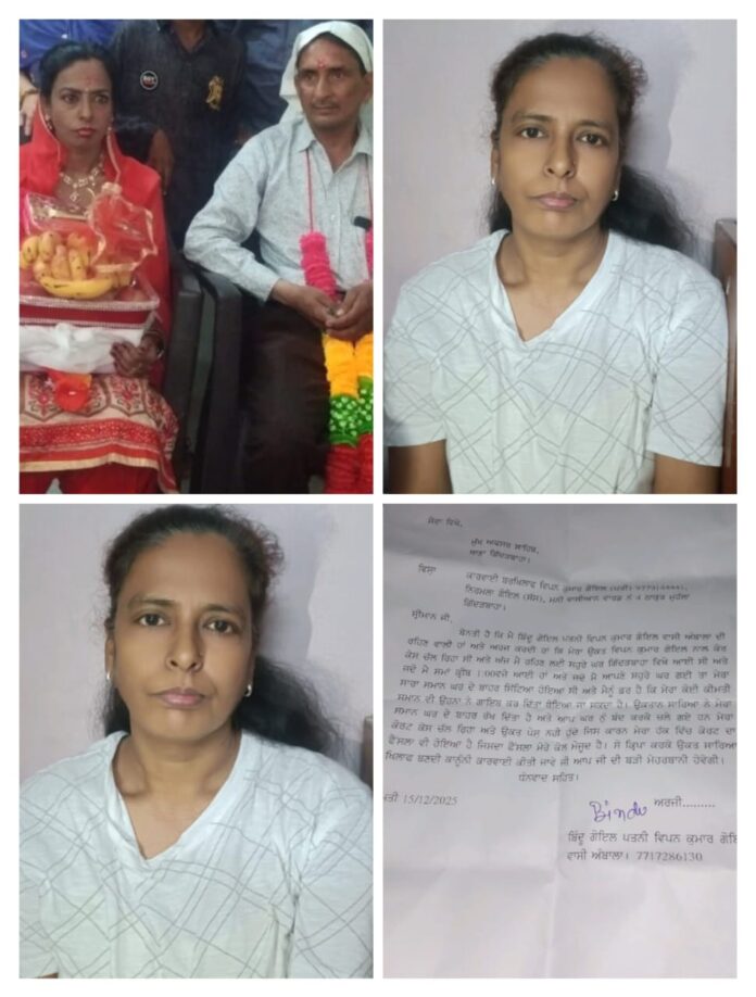 अंबाला निवासी बिंदू गोयल ने बताया कि उसका विवाह विपिन कुमार गोयल के साथ हुआ था और दोनों के बीच पारिवारिक विवाद के चलते मामला कोर्ट में चल रहा था। कोर्ट में पति और ससुराल पक्ष के पेश न होने के कारण फैसला उसके हक में आया है जिसकी प्रति उसके पास मौजूद है। इसके बावजूद जब वह 15 दिसंबर को दोपहर करीब एक बजे अपने ससुराल गिद्दड़बाहा पहुंची तो वहां का नजारा देखकर वह हैरान रह गई।