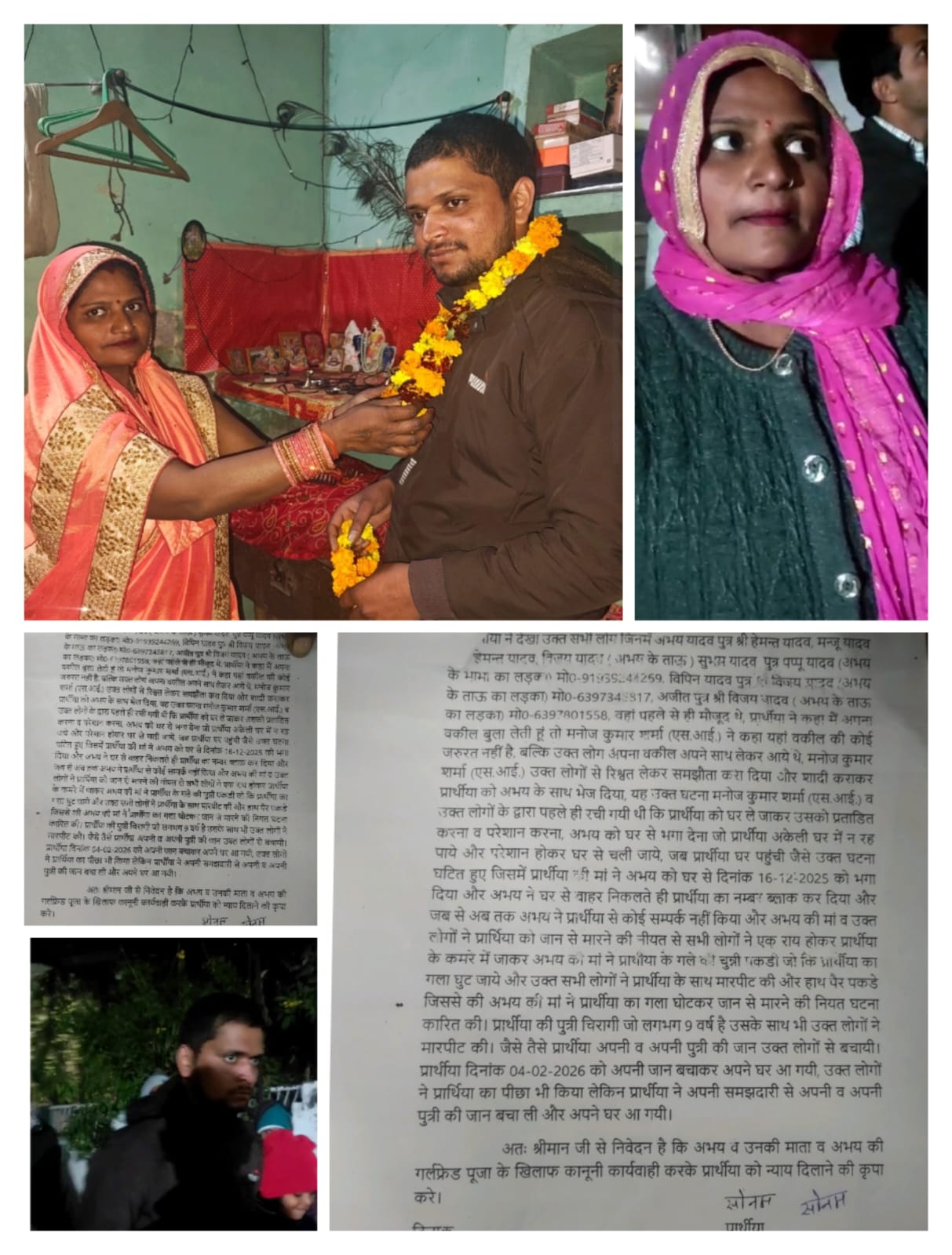 सोनम के अनुसार 16 दिसंबर 2025 को अभय को उसकी मां ने घर से भगा दिया और घर से निकलते ही अभय ने उसका नंबर ब्लॉक कर दिया। इसके बाद उसने कोई संपर्क नहीं किया। महिला का आरोप है कि इसके बाद अभय की मां और अन्य परिजनों ने एक राय होकर उसके कमरे में घुसकर उसके गले की चुन्नी पकड़कर गला घोंटने की कोशिश की। इस दौरान उसके साथ मारपीट की गई और हाथ पैर पकड़ लिए गए ताकि उसे जान से मारा जा सके। उसकी नौ वर्षीय बेटी चिरागी के साथ भी मारपीट की गई।