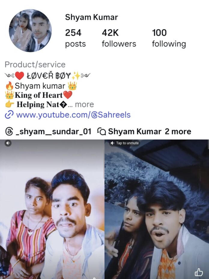 बिहार के मधुबनी जिले के रही थाना क्षेत्र के जगपति लक्तोली गांव निवासी 22 वर्षीय श्याम सुंदर शाह इन दिनों अपनी जिंदगी की कठिनाइयों और संघर्ष के बीच सोशल मीडिया पर पहचान बनाने की कोशिश में जुटे हुए हैं। श्याम सुंदर शाह, जो गणेश साह के पुत्र हैं, का पता पोस्ट ड्रमरी, पट्टी जगत, भोवरा, जिला मधुबनी, बिहार 847212 बताया गया है। वे पिछले करीब पांच वर्षों से लगातार वीडियो बनाकर सोशल मीडिया प्लेटफॉर्म पर सक्रिय हैं और अपने हुनर के जरिए लोगों का मनोरंजन करने का प्रयास कर रहे हैं।