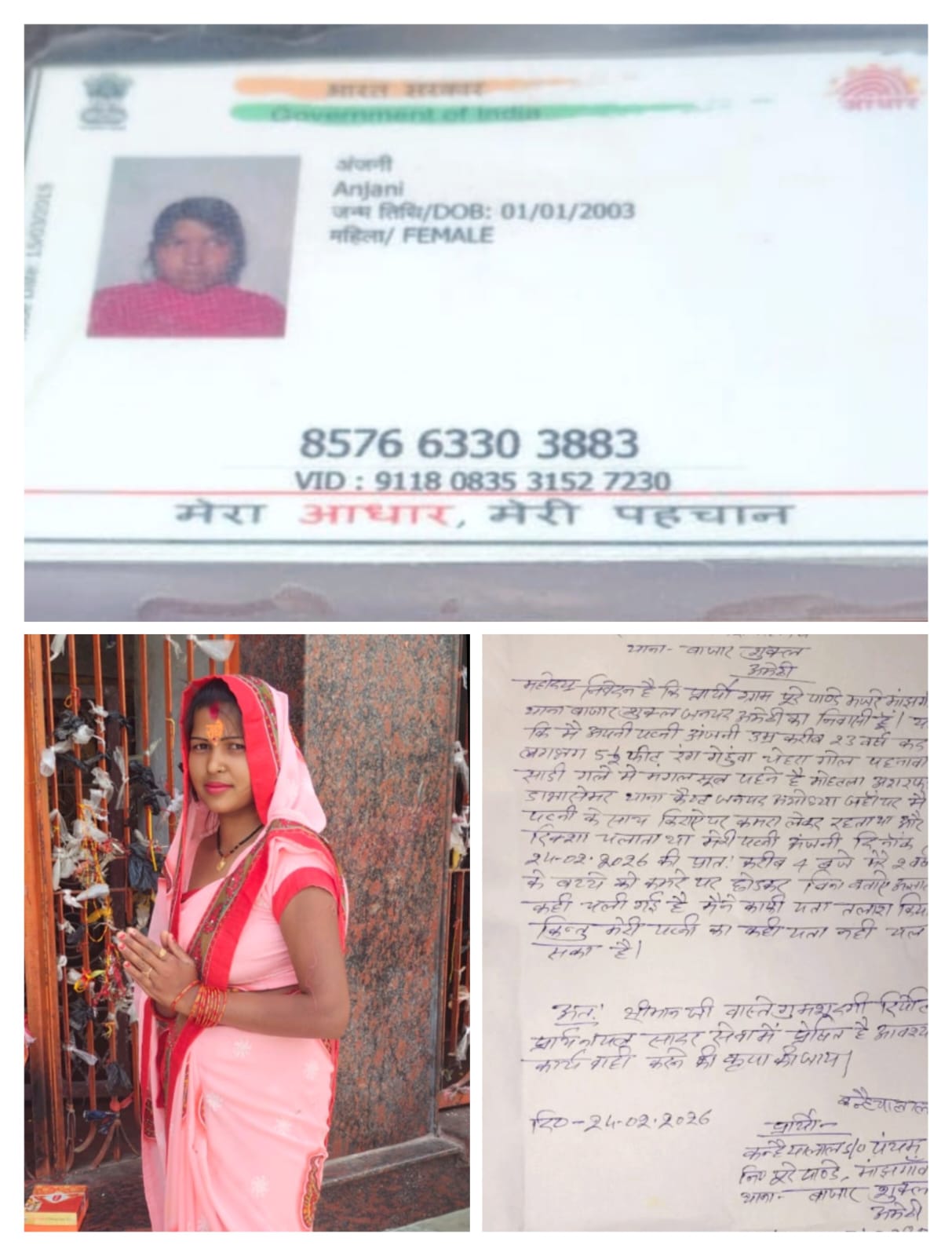 परिजनों के मुताबिक अंजनी की उम्र करीब 23 वर्ष है, कद लगभग पांच फीट, रंग गेहुआं और चेहरा गोल है। वह घर से निकलते समय साड़ी पहने हुए थीं और गले में मंगलसूत्र था। पति कन्हैयालाल का कहना है कि सुबह जब उनकी नींद खुली तो पत्नी कमरे में नहीं थीं। आसपास और रिश्तेदारों में काफी तलाश की गई, लेकिन उनका कोई सुराग नहीं मिला।