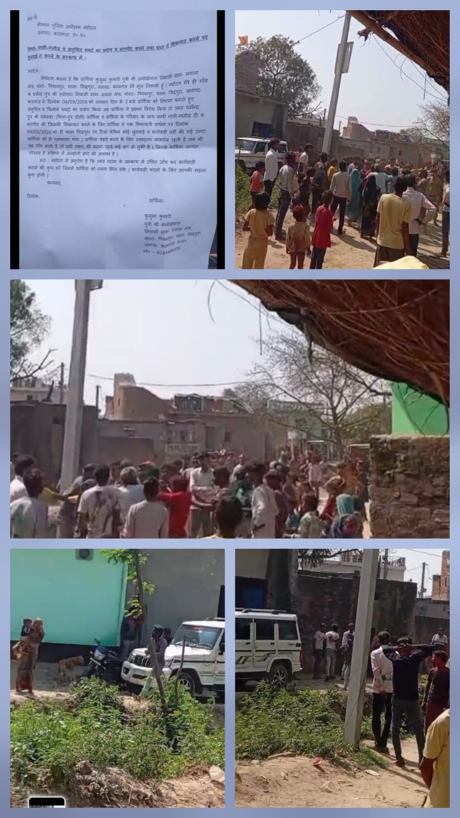 पीड़िता कुसुमा कुमारी, पुत्री अनोखेलाल, निवासी ग्राम नगला मोड़, पोस्ट पिथनपुर ने पुलिस अधीक्षक को दिए प्रार्थना पत्र में बताया कि 4 मार्च 2026 को दोपहर करीब 2 बजे गांव के ही धर्मेंद्र पुत्र रामेश्वर ने उसे निशाना बनाते हुए बेहद आपत्तिजनक और घिनौने शब्दों का प्रयोग किया। जब उसने इसका विरोध किया तो आरोपी और उसके पिता ने मिलकर न केवल गाली-गलौज की, बल्कि उसके साथ और उसके परिवार के साथ मारपीट भी की।