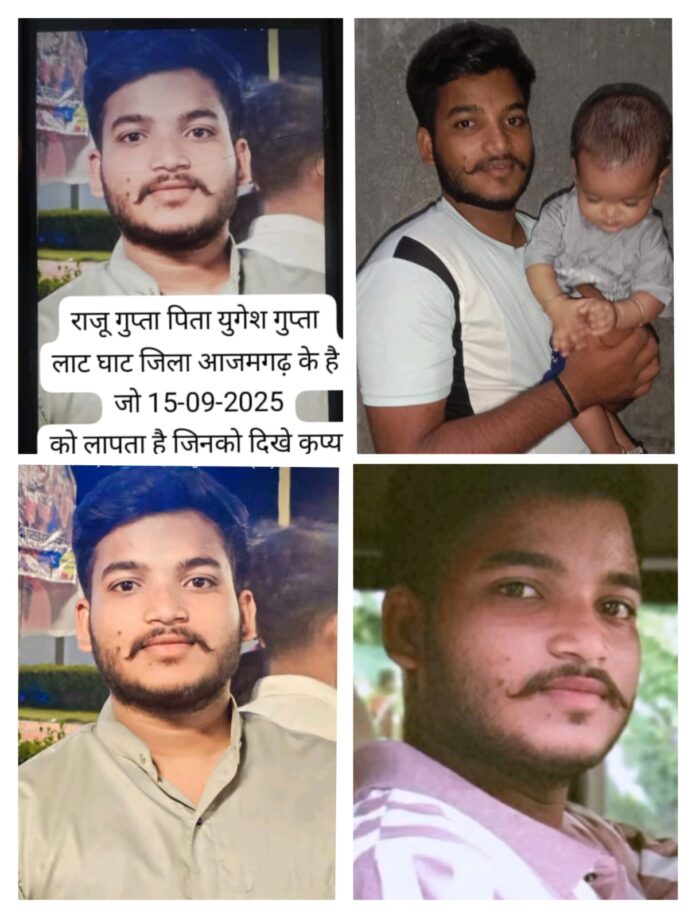 आजमगढ़ जनपद के लाटघाट क्षेत्र से एक युवक राजू गुप्ता (पिता – युगेश गुप्ता) 15 सितंबर 2025 से रहस्यमय परिस्थितियों में लापता हो गए हैं। परिजनों का कहना है कि युवक दोपहर करीब 1 बजे के बाद से घर से निकले और तब से उनका कोई पता नहीं चला।