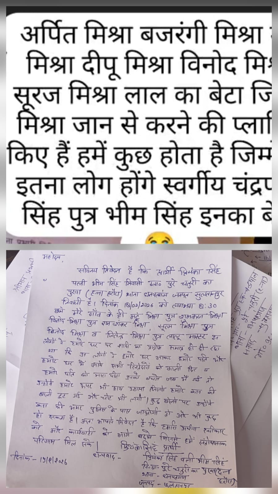 सुलतानपुर जिले के धनपतगंज थाना क्षेत्र में एक शादी समारोह के बाद हुए विवाद ने तूल पकड़ लिया है। पूरे चतुरी का पुरवा (हरौरा) निवासी प्रियंका सिंह ने गांव के ही चार लोगों पर घर में घुसकर गाली-गलौज, मारपीट और जान से मारने की धमकी देने का गंभीर आरोप लगाया है। इतना ही नहीं, पीड़िता का आरोप है कि पुलिस भी मामले में निष्पक्ष कार्रवाई करने के बजाय उल्टा उन्हीं पर आरोप मढ़ रही है और शिकायत को दबाने की कोशिश की जा रही है।