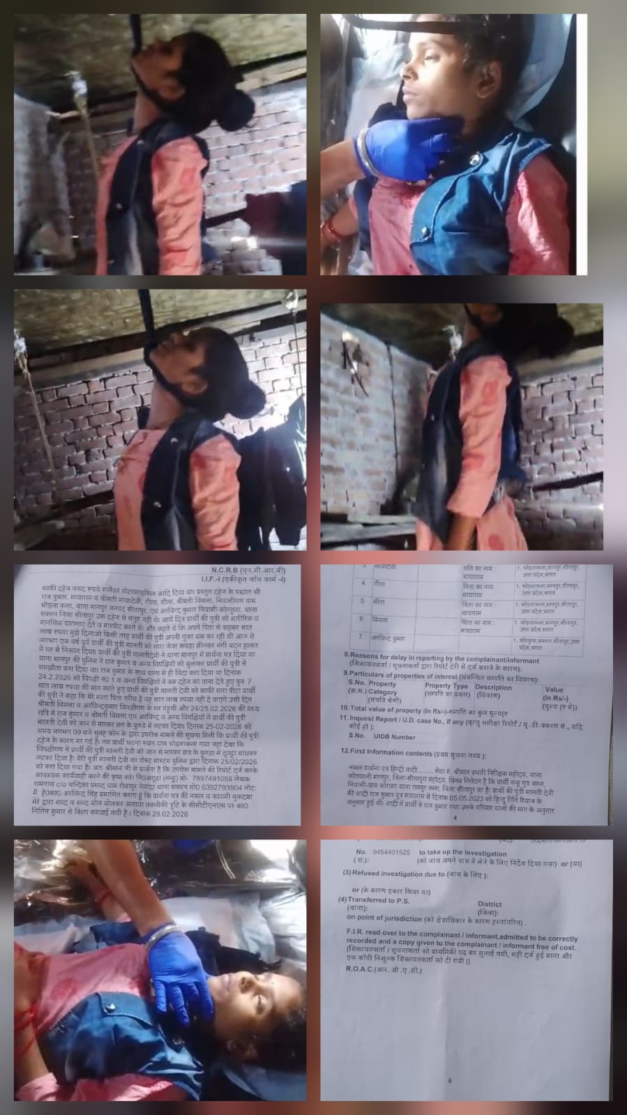 घटना 24 फरवरी 2026 की मध्यरात्रि को घटित हुई। आरोप है कि राज कुमार, बिमला, अरविंद कुमार और अन्य ससुराल वालों ने मालती देवी को कमरे से मारकर छत के कुण्डे में लटका दिया। घटना की सूचना दोपहर 12 बजे तक प्रार्थी नन्हू को मिली। जब पुलिस मौके पर पहुंची, तब ही प्रार्थी के परिवार को मामले की जानकारी दी गई।