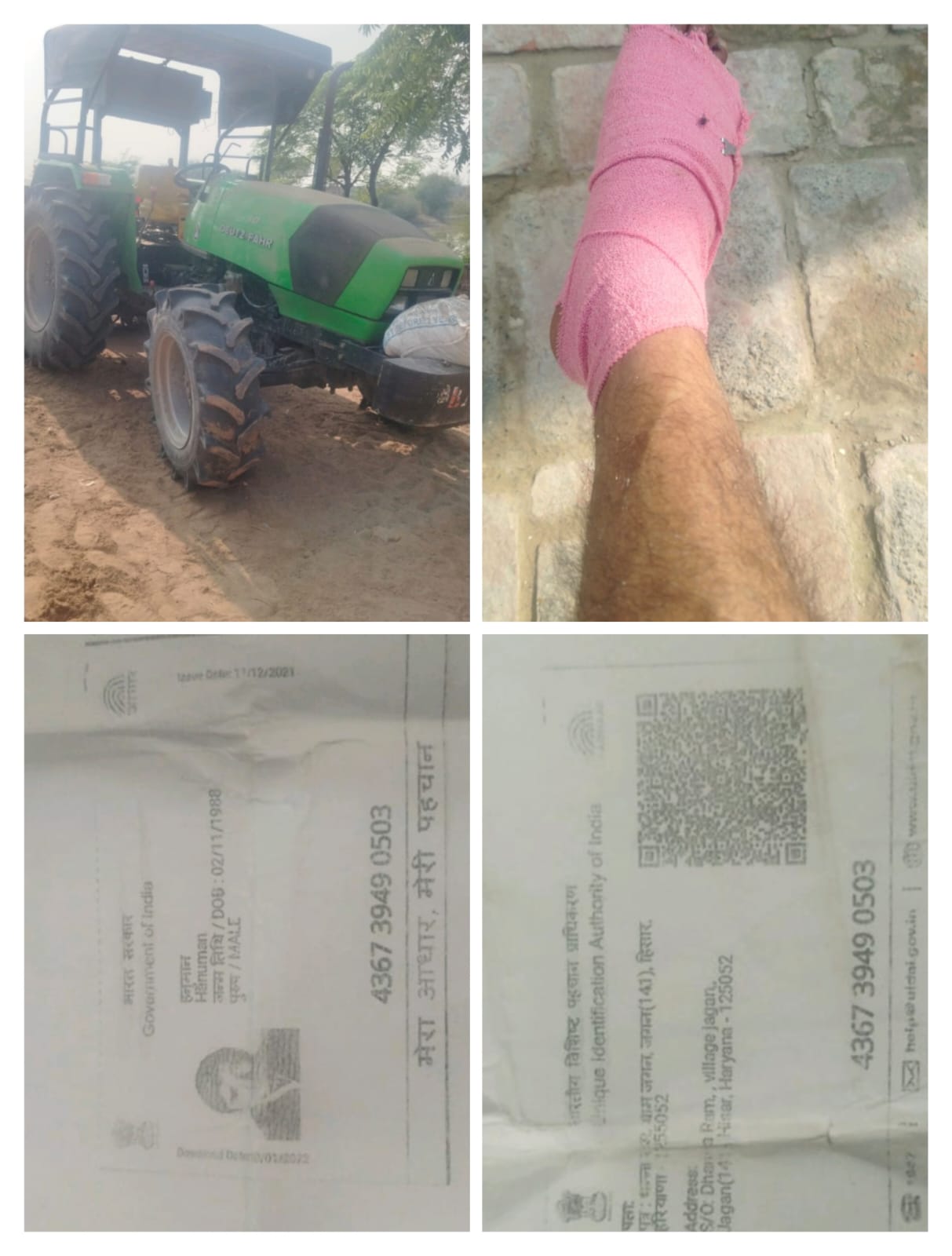 हनुमान के मुताबिक, गांव के ही अनिल पुत्र प्रकाश ने उसका ट्रैक्टर बीच रास्ते में रोक लिया। इसके बाद उसने तुरंत डायल-112 पर कॉल कर पुलिस को सूचना दी। हनुमान का आरोप है कि 112 की टीम उसे मौके से उठाकर थाना अग्रोहा ले गई, जहां उसके साथ बुरी तरह मारपीट की गई, जिसके कारण उसके पैर में फ्रैक्चर हो गया।