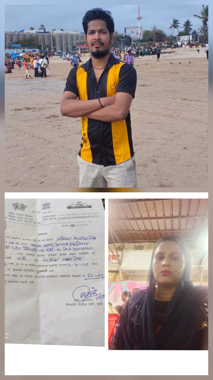 मेघवाडी पुलिस थाने में दर्ज रिपोर्ट के अनुसार, स्मिता के पति सलिम भोर (उम्र 31 वर्ष) 15 अक्टूबर 2025 को शाम करीब चार बजे रहस्यमय परिस्थितियों में घर से लापता हो गए।