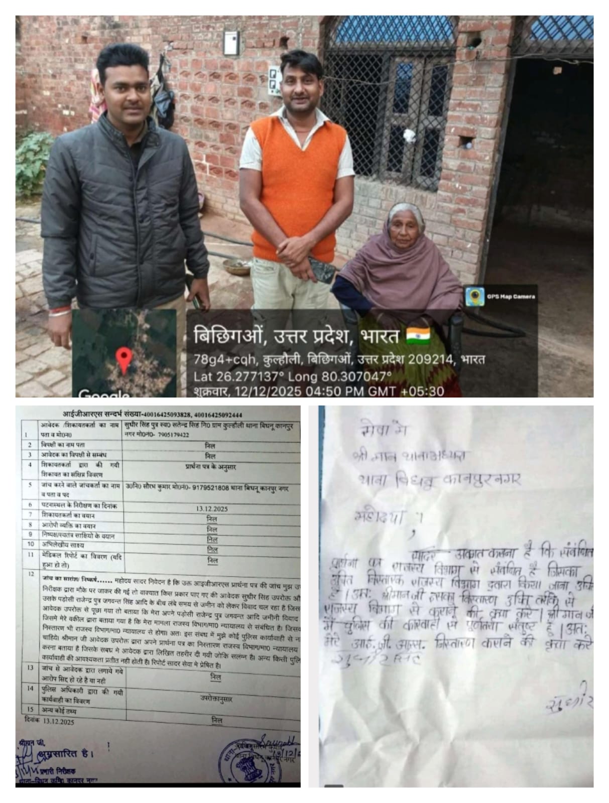 इस पूरे विवाद का एक और अहम पहलू आईजीआरएस शिकायत के जरिए सामने आया। सुधीर सिंह निवासी ग्राम कुल्हौली, थाना बिधनू, कानपुर नगर ने आईजीआरएस पोर्टल पर शिकायत दर्ज कराई थी। जांच उपनिरीक्षक सौरभ कुमार ने 13 दिसंबर को मौके पर जाकर जांच की।