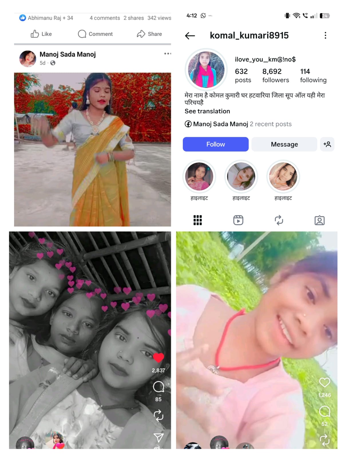आज हम बात करेंगे सिपोल जिले की 14 वर्षीय कोमल कुमारी की, जिन्होंने अपनी मेहनत, लगन और हौसले के दम पर सोशल मीडिया की दुनिया में अपनी अलग पहचान बनाना शुरू किया है। साधारण परिवार से ताल्लुक रखने वाली कोमल ने अपनी जिंदगी को इस तरह बदला कि आज वह पूरे देश में “सोशल मीडिया क्वीन” के नाम से मशहूर होना चाहती हैं।