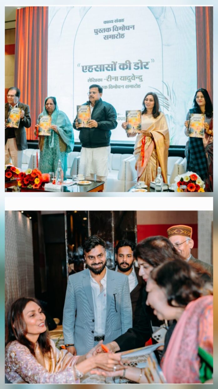 राजधानी भोपाल में शनिवार को साहित्य और संवेदनाओं का ऐसा संगम देखने को मिला, जिसने पूरे सांस्कृतिक परिदृश्य को जीवंत कर दिया। एजी पब्लिशिंग हाउस द्वारा प्रकाशित चर्चित लेखिका रीना यादुवेन्दु की काव्य कृति “एहसासों की डोर” का भव्य विमोचन एक गरिमामयी समारोह में संपन्न हुआ। कार्यक्रम में साहित्य, सिनेमा और प्रशासन जगत की नामचीन हस्तियों की मौजूदगी ने आयोजन को खास बना दिया।