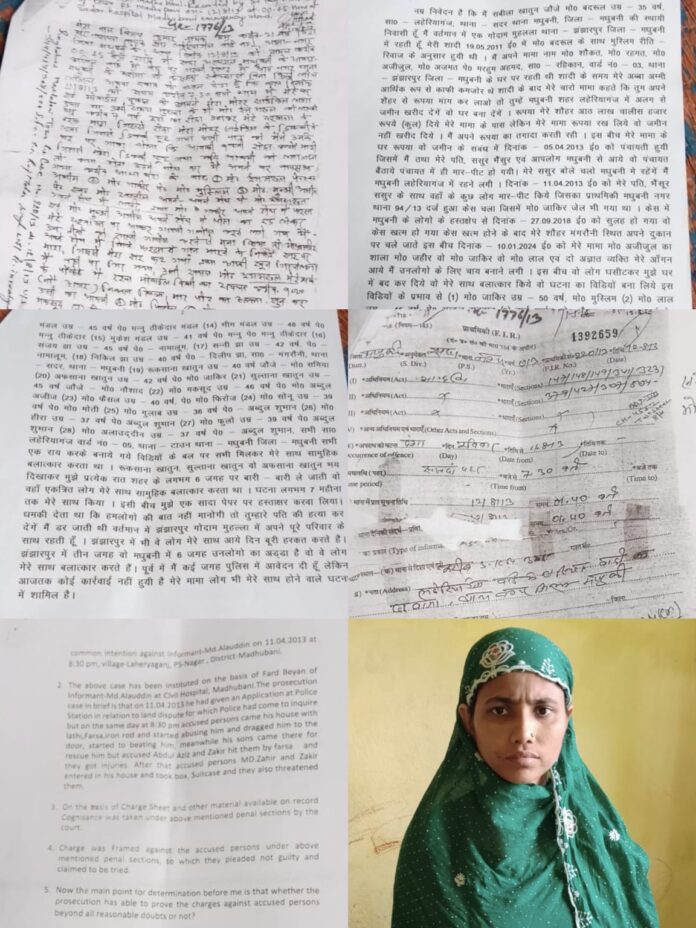 बिहार के मधुबनी जिले से एक बेहद गंभीर और चौंकाने वाला मामला सामने आया है। एक महिला ने आरोप लगाया है कि पुराने जमीन विवाद को लेकर करीब 80 लोगों के एक कथित गिरोह ने उसे लगातार प्रताड़ित किया और कई महीनों तक अलग-अलग जगहों पर उसके साथ जबरन शारीरिक संबंध बनाए। पीड़िता का कहना है कि उसने कई बार पुलिस और प्रशासन से शिकायत की, लेकिन अब तक कोई ठोस कार्रवाई नहीं हुई। अब महिला ने पुलिस अधीक्षक से न्याय की गुहार लगाई है।