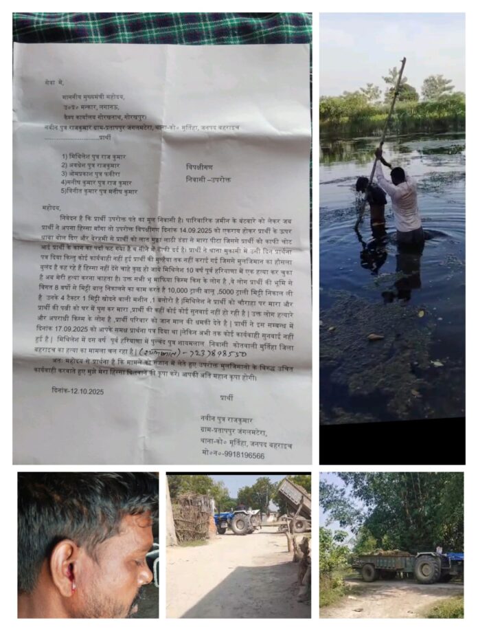 बहराइच/गोरखनाथ, 15 अक्तूबर 2025 — ग्राम प्रतापपुर जंगलमटेरा के निवासी नवीन पुत्र राजकुमार ने परिवार की साझा जमीन के बंटवारे को लेकर हुए विवाद में आरोपियों द्वारा दिनांक 14 सितंबर 2025 को उसे और उसकी पत्नी पर एकराय होकर हमला करने का गंभीर आरोप लगाया है। शिकायत के अनुसार हमला लाठी-डंडा, लात-घूंसे से किया गया, जिसमें शिकायतकर्ता को कान का पर्दा फटने और सीने में तेज दर्द की शिकायत है।