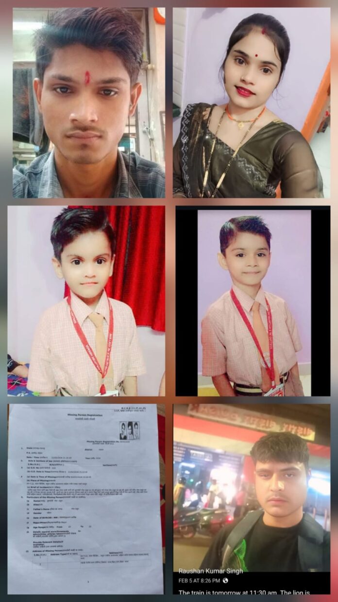 पालघर/छपरा। सोशल मीडिया पर हुई एक पहचान ने एक परिवार को गहरे संकट में डाल दिया है। बिहार के छपरा जिले के गौरीगंज थाना क्षेत्र के रहने वाले रमेश कुमार की पत्नी सुमन देवी अपने दो मासूम बच्चों के साथ पिछले कई दिनों से लापता हैं। आरोप है कि रोशन सिंह नाम का युवक उन्हें डरा-धमकाकर अपने साथ ले गया। घटना 20 फरवरी 2026 की दोपहर करीब 3:30 बजे की बताई जा रही है। मामले की शिकायत पुलिस में दर्ज कराई जा चुकी है, लेकिन अब तक महिला और बच्चों का कोई ठोस सुराग नहीं मिल पाया है।