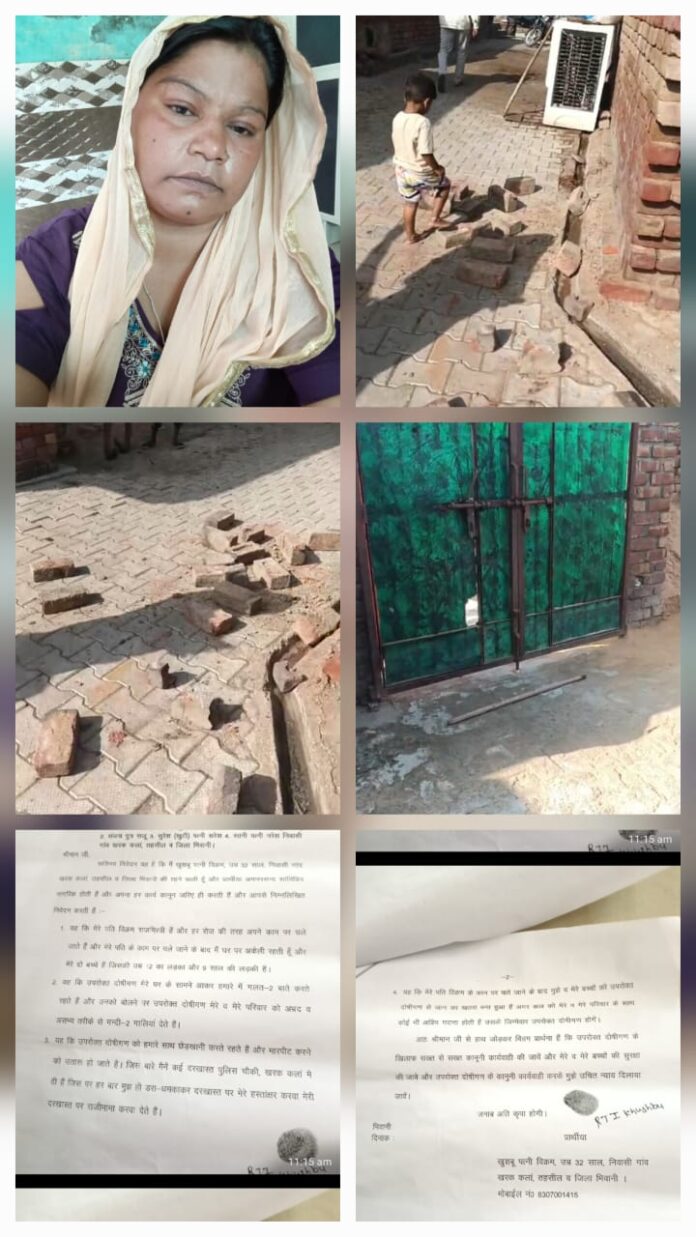गांव खरक कलां में शनिवार को एक सनसनीखेज वारदात सामने आई। यहां चार लोगों ने मिलकर एक महिला के घर पर हमला बोल दिया और घर की दीवार को तोड़ दिया। अचानक हुए इस हमले से पूरा परिवार दहशत में आ गया। पीड़ित महिला खुशबू (32) पत्नी विक्रम ने सीएम विंडो के माध्यम से मुख्यमंत्री हरियाणा को शिकायत दर्ज कराई है और दोषियों पर सख्त कार्रवाई की मांग की है।